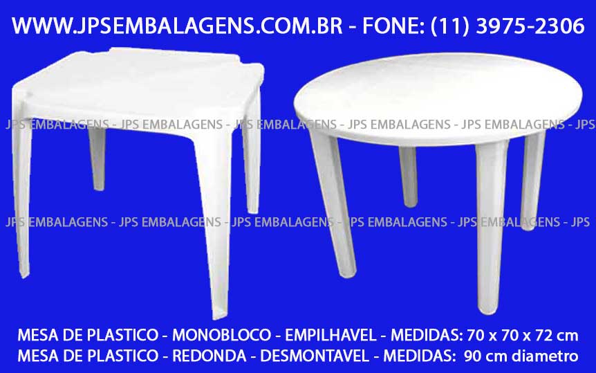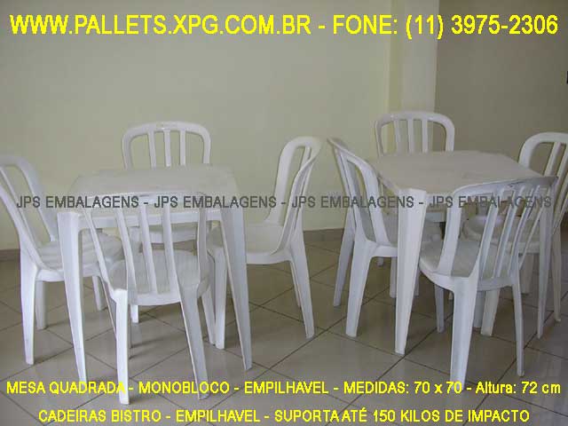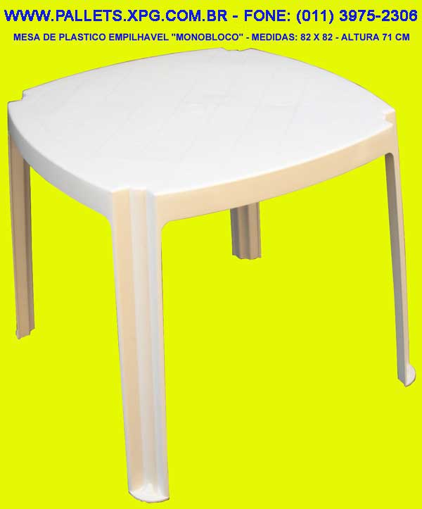 MESA QUADRADA MONOBLOCO EMPILHAVEL - MEDIDAS: 70 X 70 X 72 CM