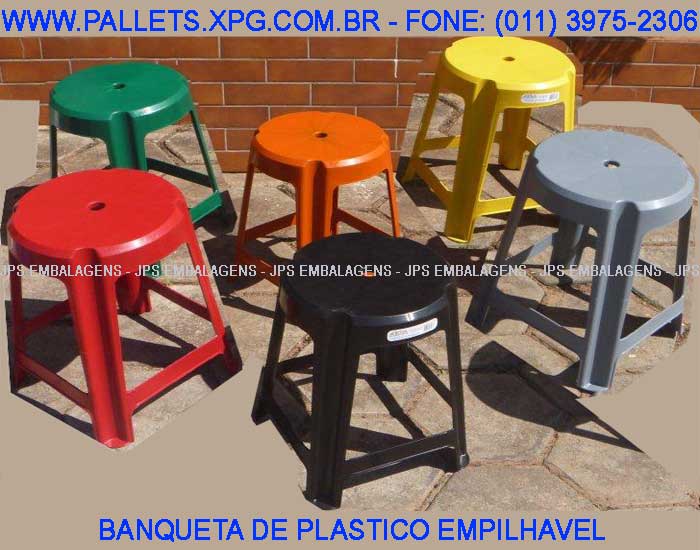 BANQUETA DE PLASTICO COLORIDA EMPILHAVEL